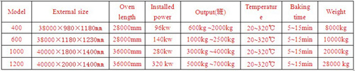 This oven is consisted of oven shell, mesh belt or chain driving unit, humidity discharging system, infrared electrothermal tube and electric control system. The internal part of the oven shell is made from stainless steel plate which is helpful to improve the heat efficiency. it is equipped with mesh belt error correcting wheel and mechanic error correcting device to ensure that the oven can continually and normally carry out the production. The humidity system is equipped with control valve for controlling the temperature and humidity of internal part of the oven, The thermal source is the combined infrared electrothermal tubes with reasonable arrangement so as to improve the utility ratio of electric heating units. Every section oven has the electrothermal indicating function. The quality electric units are selected for automation. It is a full-function oven for the production of various biscuits. There are three heating methods, diesel, gas and electric, for your choice. We also can customize product according to customer’s requirements.
